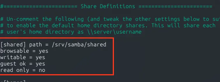 [shared] path = /srv/samba/shared