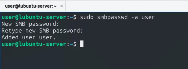 sudo smbpasswd -a user