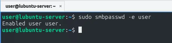 sudo smbpasswd -e user
