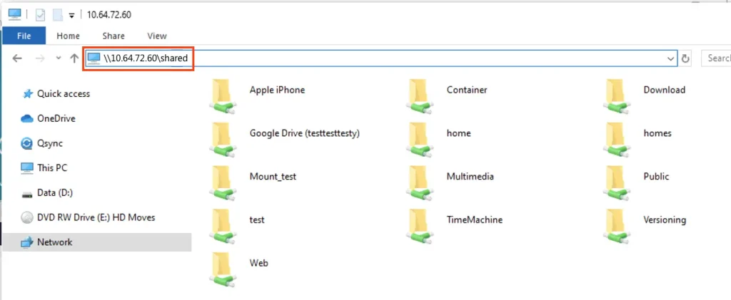 Для доступа к общей папке используйте команду: