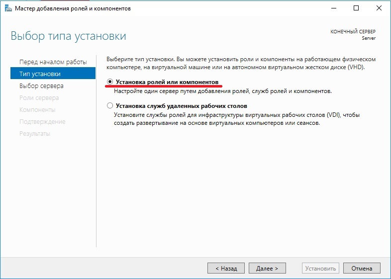 В ролях сервера мы выбираем следующие стандартные роли. Вы можете выбрать что-то еще, если Вам необходимо под Ваши задачи.