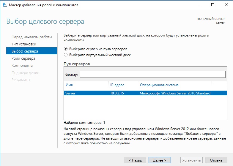 Выбираем нужный сервер в пуле, он будет с именем, который Вы назначили по инструкции выше.