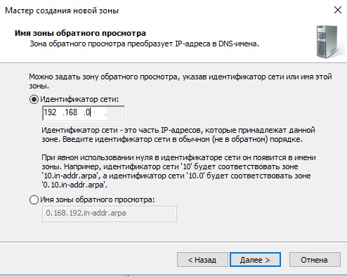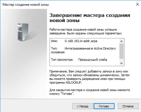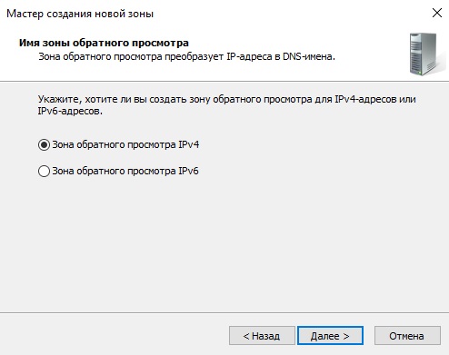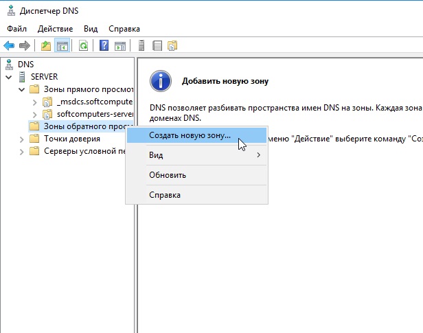Раскрываем древо DNS => “Имя вашего сервера” => Зоны прямого просмотра => Зоны обратного просмотра => Правой кнопкой мыши на данный пункт и “Создать новую зону”.