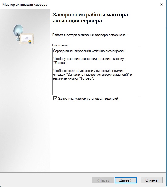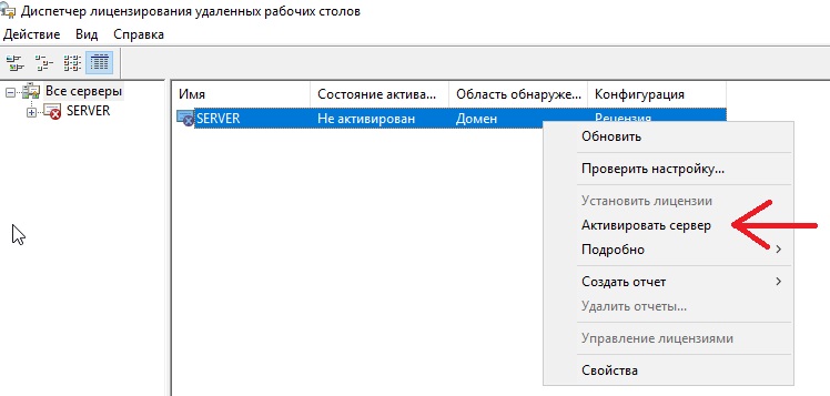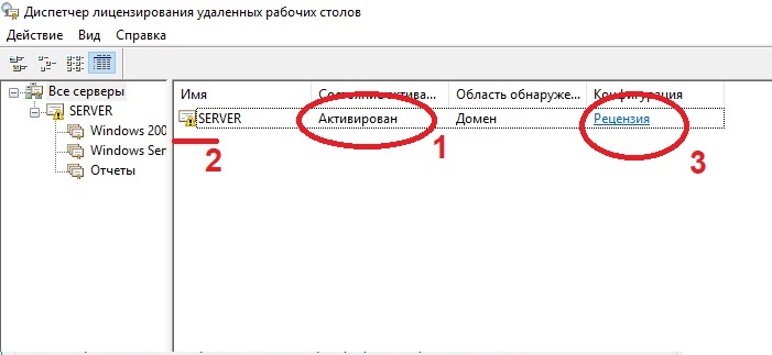 После возвращаемся в диспетчер лицензирования удаленных рабочих столов. И смотрим активирован ли сервер. Если да, то все ок. Но у Вас еще может быть “желтое предупреждение” на иконке сервера. Чтобы устранить проблемы переходим в “Рецензия”. В меню данной “Рецензии” могут быть пункты которые нужно отметить, нажмите соответствующие кнопки, если они у вас будут.