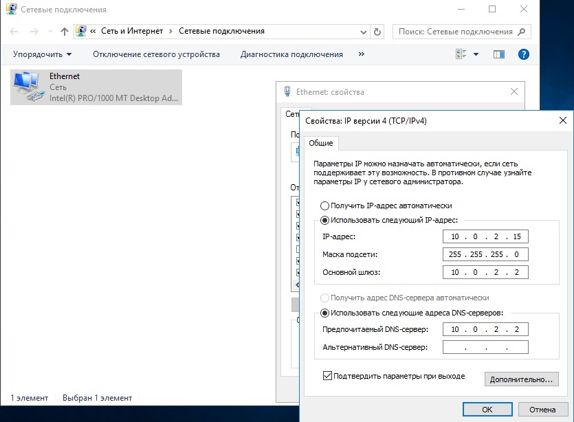 И вводим задаем здесь статические IP адреса. После ставим галку “Подтвердить параметры при выходи”, тем самым сохраняя настройки.