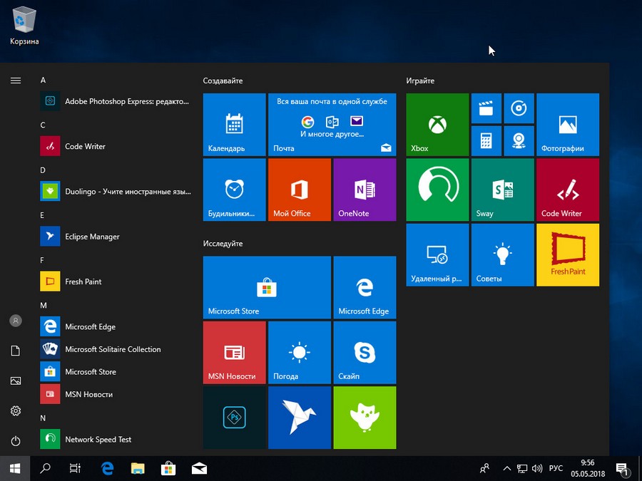 Предустановленные приложения – в данной версии Windows 10 предустановлены только самые полезные и нужные, по версии Microsoft приложения. В ней Вы не уведите предустановленных игр и различных “развлекающих” программ (если нужно, можете установить отдельно).