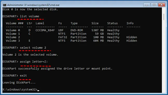 select volume X ← выберите раздел EFI (FAT32)