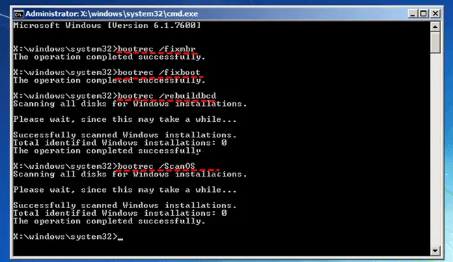 bootrec /RebuildBcd