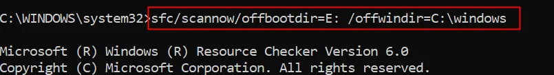 sfc /scannow /offbootdir=C:\ /offwindir=C:\Windows