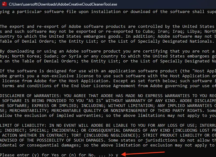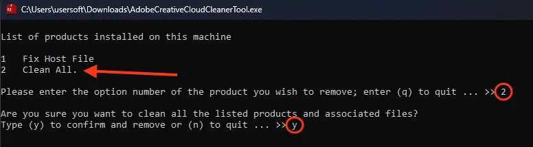 5. Подтвердите действие и дождитесь сообщения «Adobe Creative Cloud Cleaner Tool completed successfully».