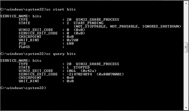 Если после команды sc start bits вы видите ошибку, значит, ваша операционная система повреждена, и проблема требует более глубокого вмешательства системного администратора (например, восстановления системных файлов через sfc /scannow).