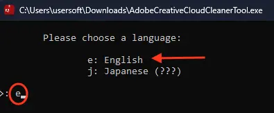 3. Откроется окно командной строки. Вам нужно будет выбрать язык (нажмите «e» для English) и принять лицензионное соглашение (нажмите «y»).