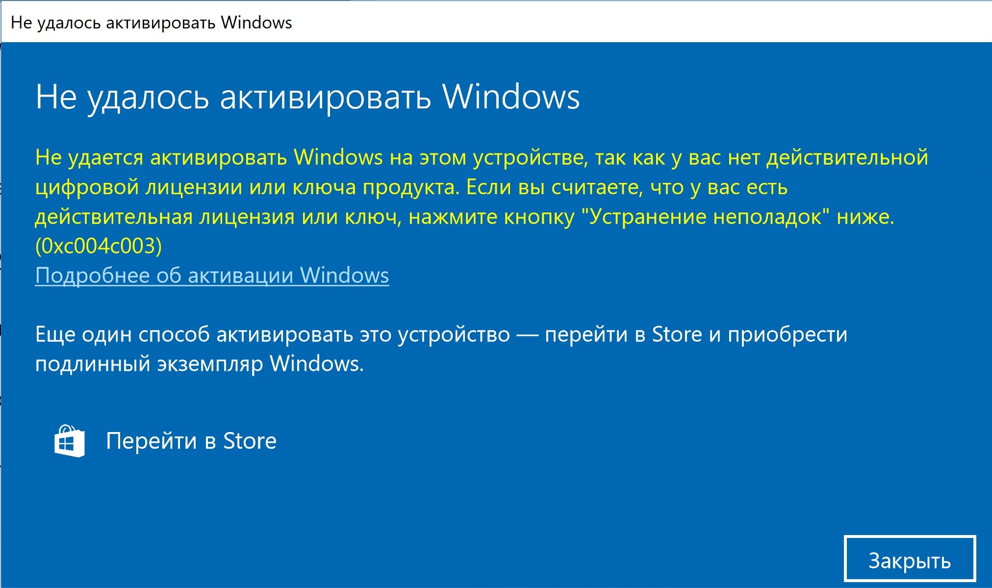 У Вас есть ключ активации Windows 10 и при активации выходит ошибка 0xc004c003, в чем причина и как решить проблему?
