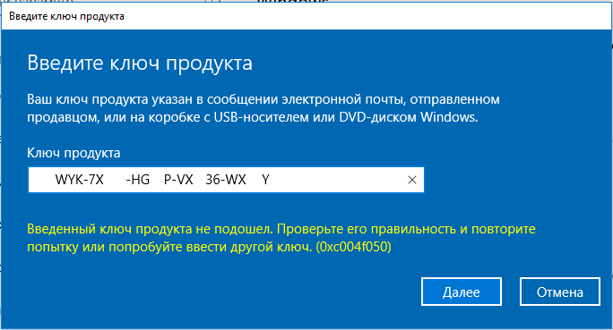 Вы приобрели ключ Windows 10 и при активации у Вас возникает ошибка 0xc004f050?