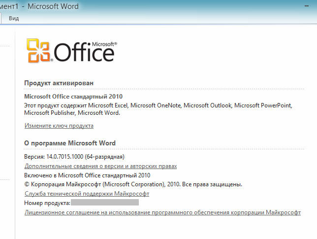4) Теперь можете проверить, что Ваш Office 2010 активирован, посмотреть Вы это можете в меню “Справка”.