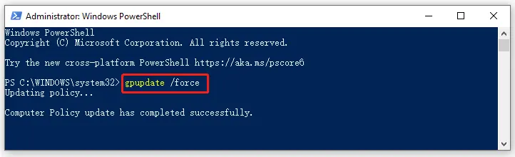 После установки политики необходимо обновить групповые политики на клиентских машинах с помощью команды: