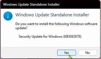 Если применение KIR не решает проблему, можно вручную установить обновление KB5063878: