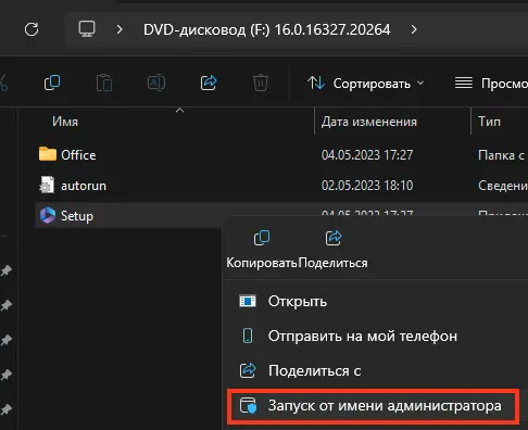 Шаг 1. Запуск установщика с правами администратора