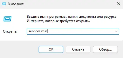 1. Нажмите Win+R → введите services.msc.