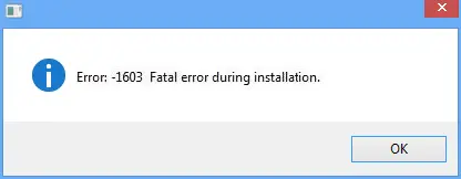 – При установке показывается сообщение «Ошибка 1603. При установке произошла неустранимая ошибка.»