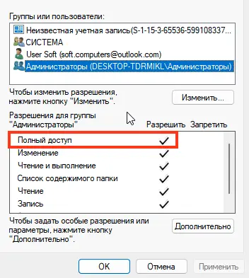 – 2.1. Убедитесь, что папка установки и временные каталоги имеют полный доступ для системных аккаунтов и администратора.