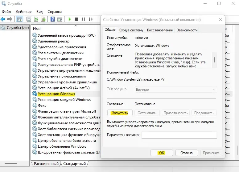 – 5.1. Убедитесь, что служба Windows Installer (msiserver) запущена.