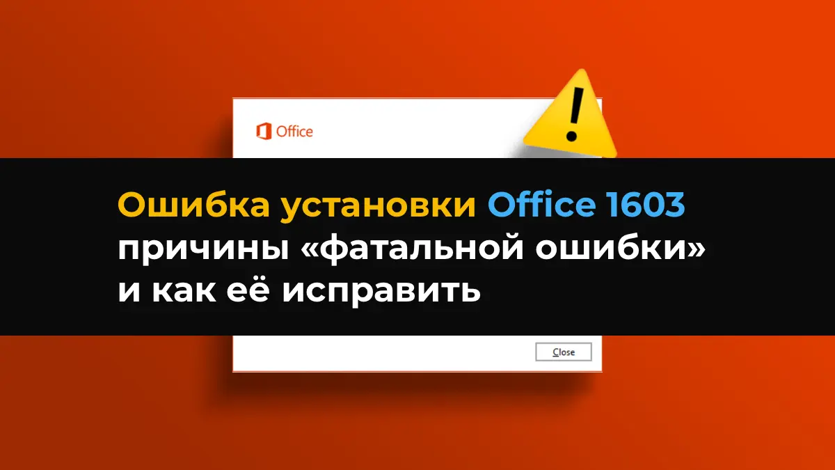 – Код 1603 — это стандартный код Windows Installer, означающий, что установка прервана из-за «фатальной», неустранимой ошибки. Чаще всего ошибка проявляется при установке пакетов MSI или при использовании Click-to-Run инсталляции Office.