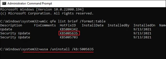 Если ошибка вызвана небольшим накопительным обновлением, его можно удалить вручную.