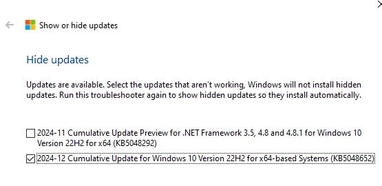 Компания Microsoft предоставляет утилиту Show or Hide Updates, которая позволяет скрывать конкретные обновления.