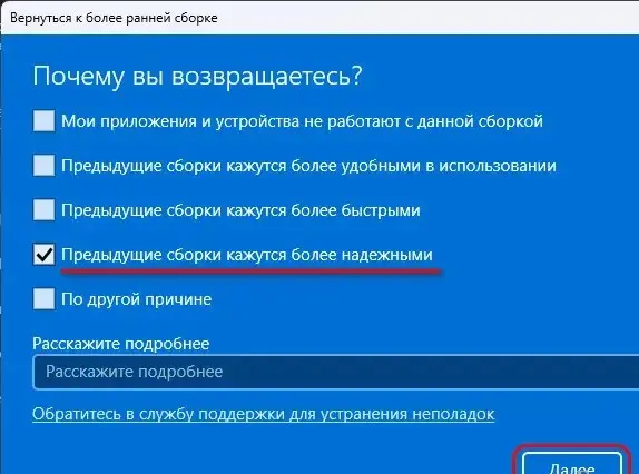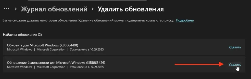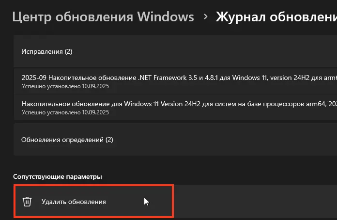 Если у вас установлено крупное обновление функций (например, переход с Windows 11 23H2 на 24H2), система сохраняет возможность вернуться назад в течение 10 дней.