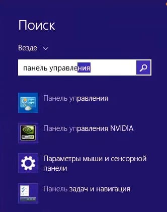 1) Переходим в “Поиск” => и вводим “Панель управления”.
