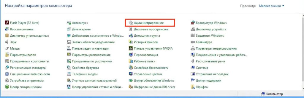 6) Теперь нам нужно вернуться обратно в панель управления и перейти в “Администрирование”.
