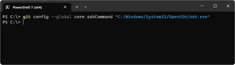 git config --global core.sshCommand "C:/Windows/System32/OpenSSH/ssh.exe"