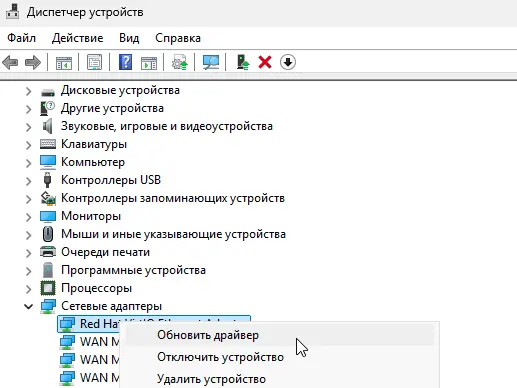 3. Кликните правой кнопкой по вашему Wi‑Fi адаптеру → «Обновить драйвер».