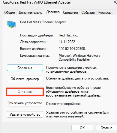 Если проблема появилась после обновления, нажмите «Свойства» → вкладка «Драйвер» → «Откатить драйвер».