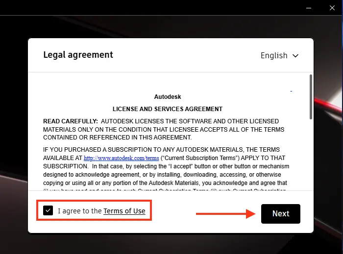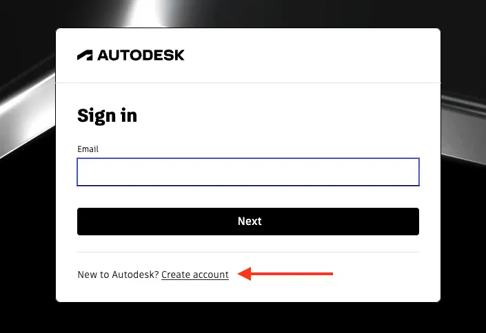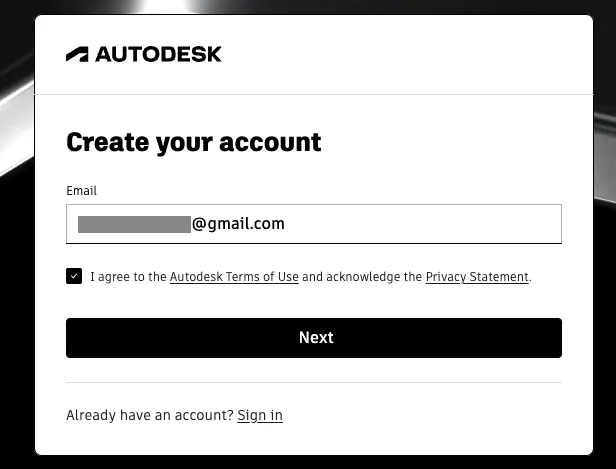 3. Введите email, на который зарегистрирован аккаунт Autodesk, и нажмите Next.