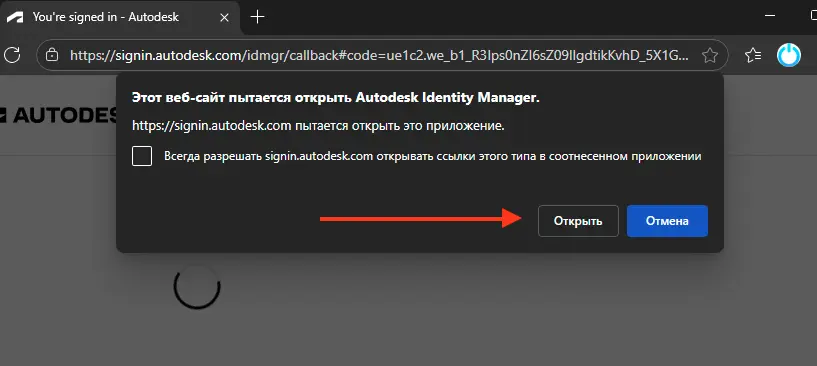 5. Autodesk подтвердит вход и активацию продукта.