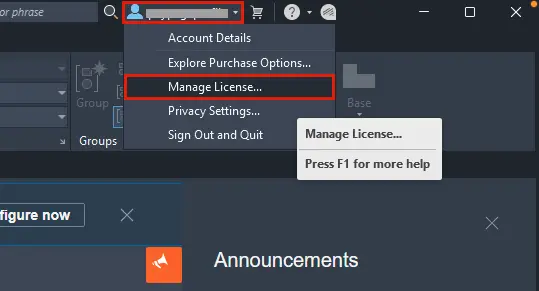 – Выберите пункт Manage license («Управление лицензией»).