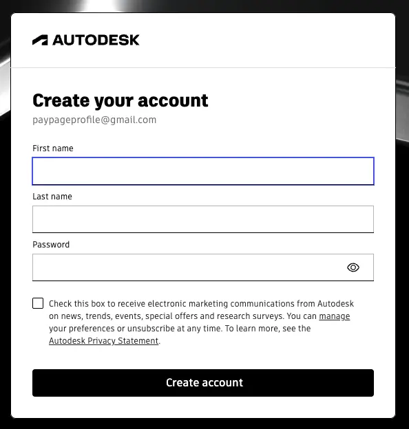 Создание аккаунта Autodesk
