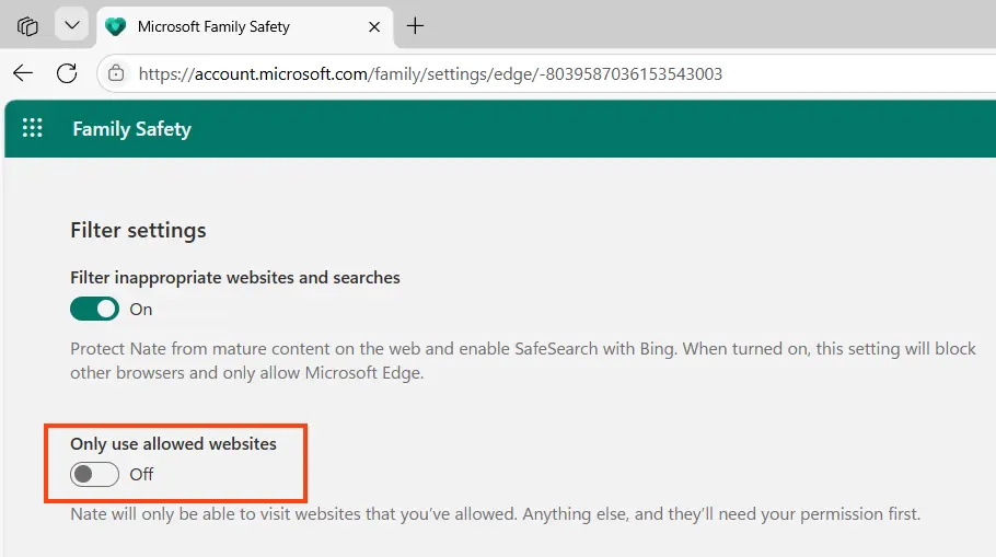 – Использовать Microsoft Edge: Для обеспечения полной функциональности веб-фильтрации рекомендуется использовать браузер Microsoft Edge, так как он интегрирован с системой родительского контроля.