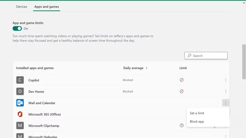 3. Перейдите в раздел App and game limits (Лимиты приложений и игр).