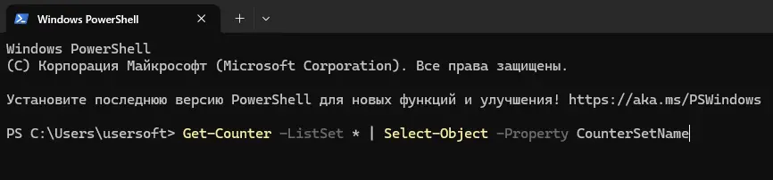 Get-Counter -ListSet * | Select-Object -Property CounterSetName