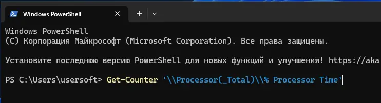 Get-Counter '\\Processor(_Total)\\% Processor Time'