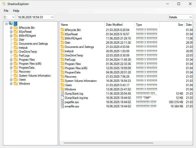 ShadowExplorer устраняет эти проблемы, позволяя быстро переключаться между датами копий и просматривать их содержимое в одном окне на английском языке, что делает процесс более комфортным.