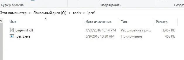 – Распакуйте архив в любую папку, например, C:\tools\iperf. В архиве находятся файлы iperf3.exe и cygwin1.dll.