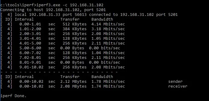 1. Убедитесь, что сервер и клиент iPerf успешно подключаются.
