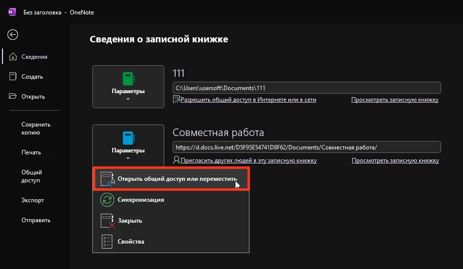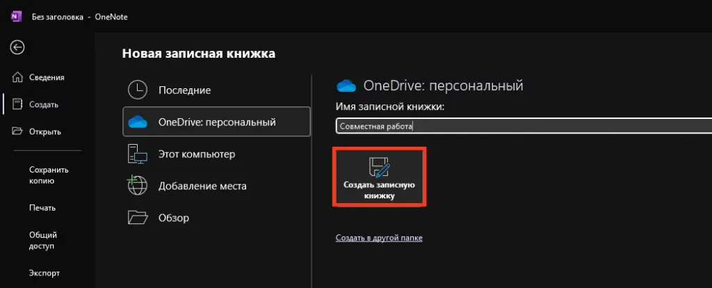 Чтобы начать совместную работу, нужно создать блокнот, который будет храниться в облаке.