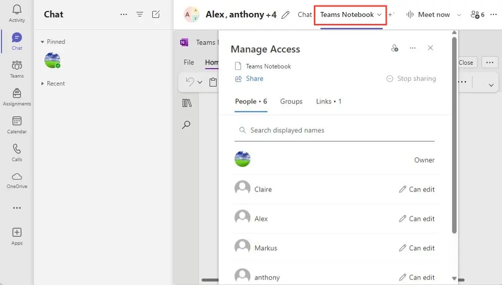 Для ещё большего удобства можно интегрировать общий блокнот в Microsoft Teams: