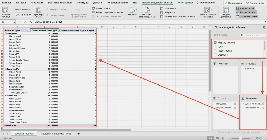Сводная таблица — отличный инструмент для оперативного анализа и подготовки базовых отчётов.