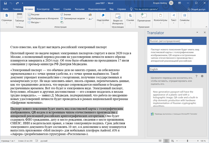6) Translator – Еще одно дополнение “переводчика” поможет Вам с документами на иностранных языках. Отличительной особенностью является облачное хранилище Translator Hub Category Service, которое позволяет получать доступ к облаку корпоративных или отраслевых переводов.